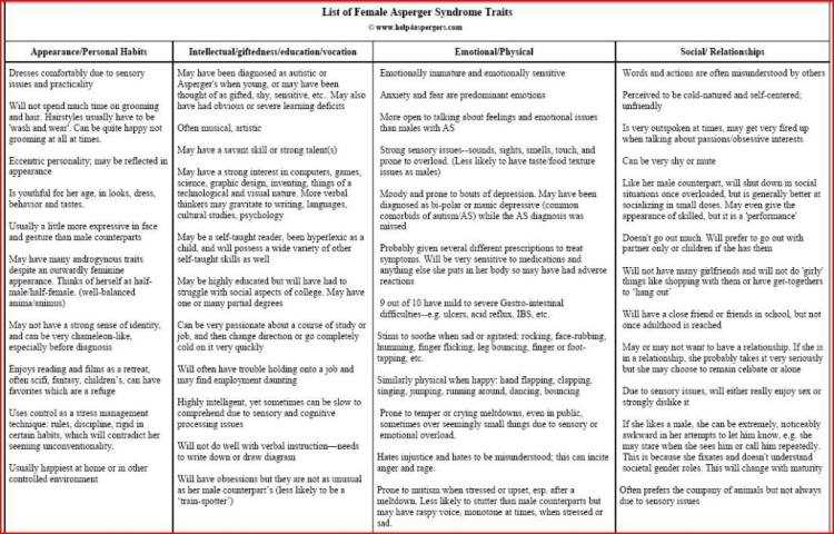 Click here to read “Aspergers Traits (Women, Females, Girls)” on Everyday Aspergers